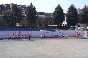 2校時、1の1と1の3は体育で、鉄棒や固定施設を使った運動遊びをしていました。