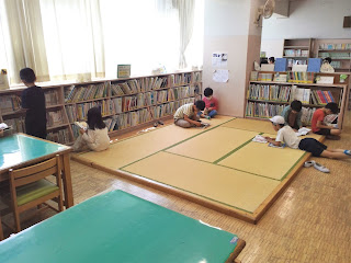 昼休みに子供たちは図書室で、本を借りたり思い思いに読書をしたりしていました。