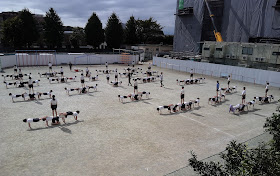 4校時、6年生は校庭で、スポーツフェスティバルに向けて表現種目「身体表現『協力』」の学習をしていました。