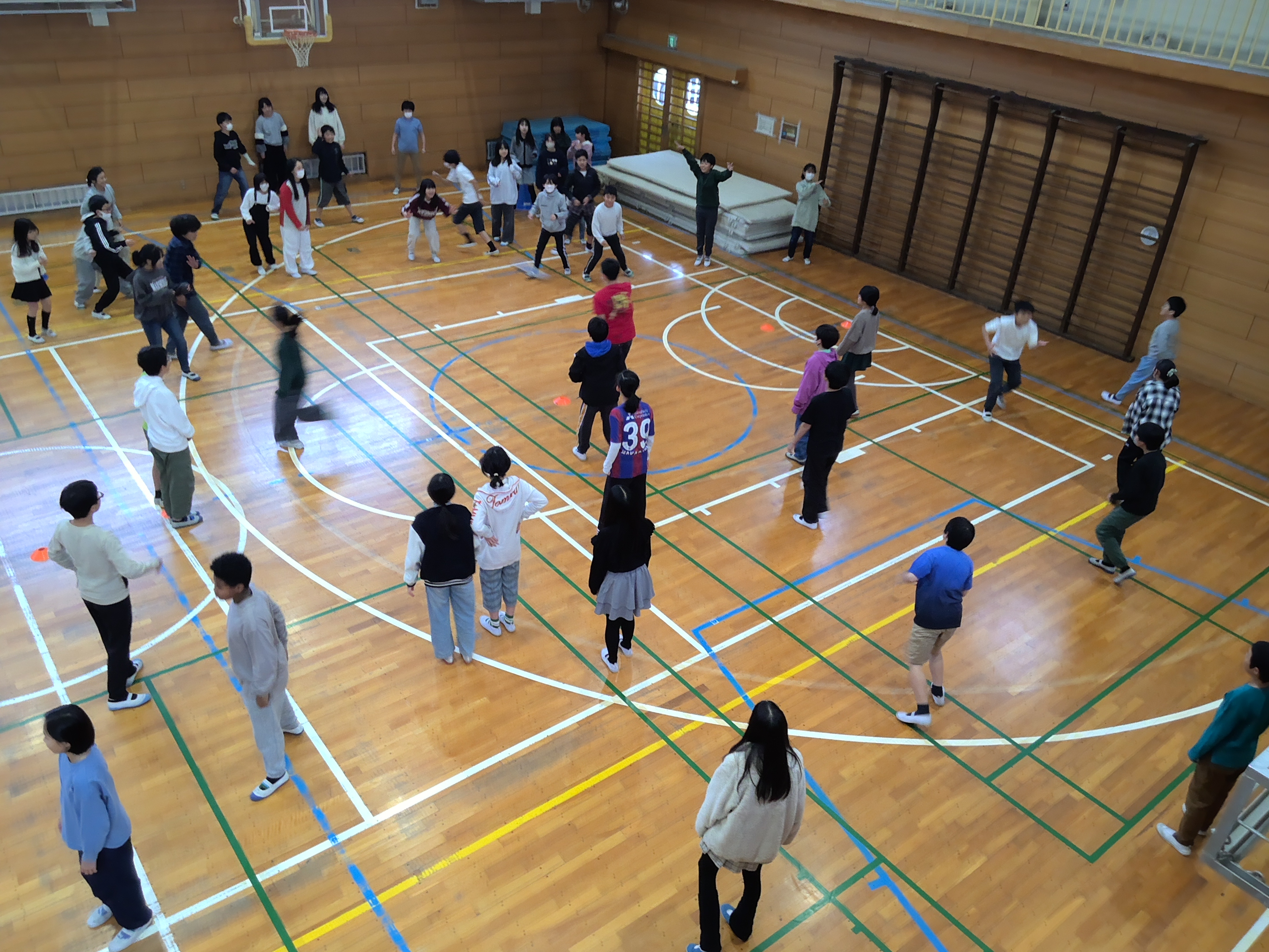 中休みに体育館で、交流委員会が企画した「学年の仲を深める会」が行われていました。