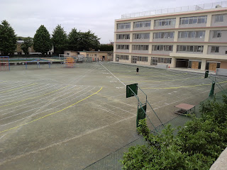 明日から行う「体力テスト」に向け、教職員は午後、校庭でソフトバール投げのためのラインを引いたり、体育館で打ち合わせをしたりしました。