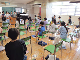 3校時、4の2は音楽で、ボンゴを使ってリズムの学習をしていました。